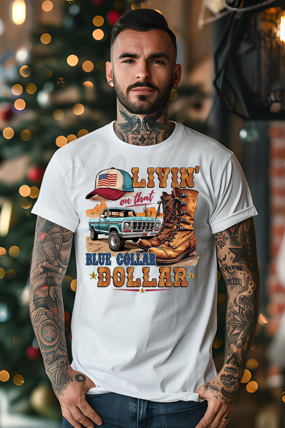 Earn your stripes in this bold Blue Collar Dollar Tee—where hard work meets humor. Featuring a striking graphic that celebrates the grind, this tee is perfect for anyone who knows the value of a day's labor. Soft, comfortable, and ready to make a statement, it's the ideal pick for casual wear that doesn't take itself too seriously. Show the world you've got that work ethic swagger.