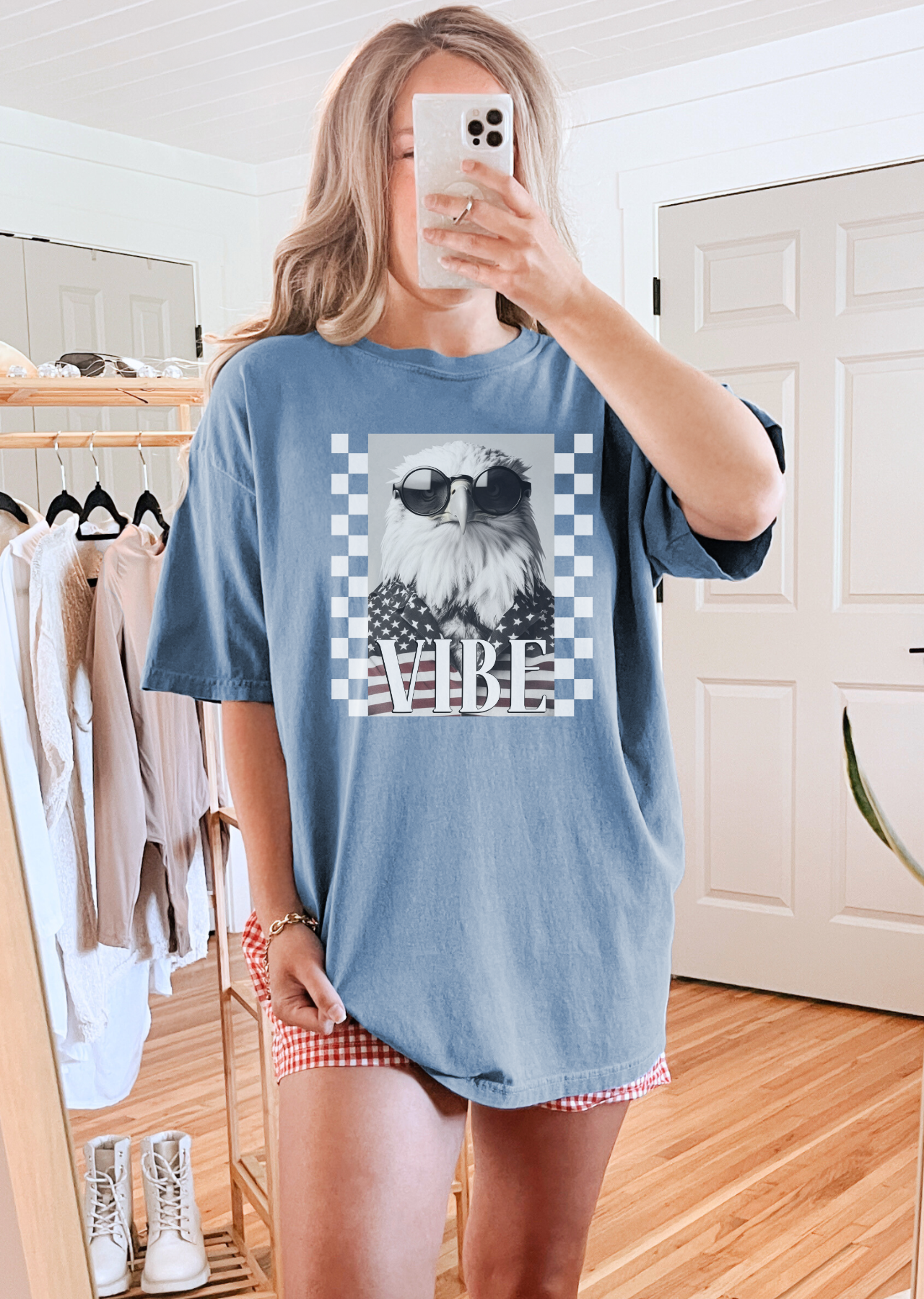Get ready to soar in style with the Eagle Vibes Comfort Colors T-Shirt, where cozy meets cool for a look that’s as bold and fun as you are.