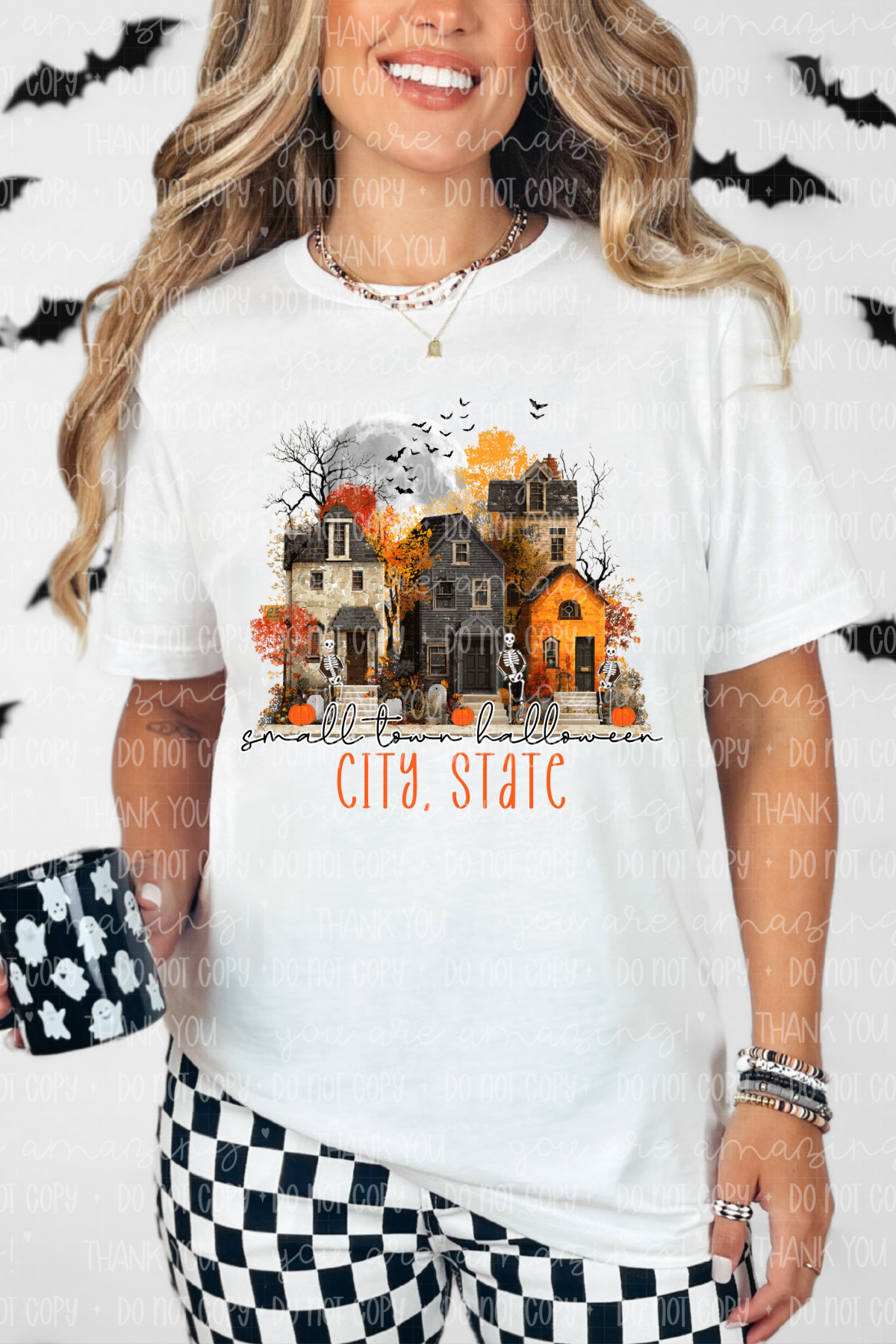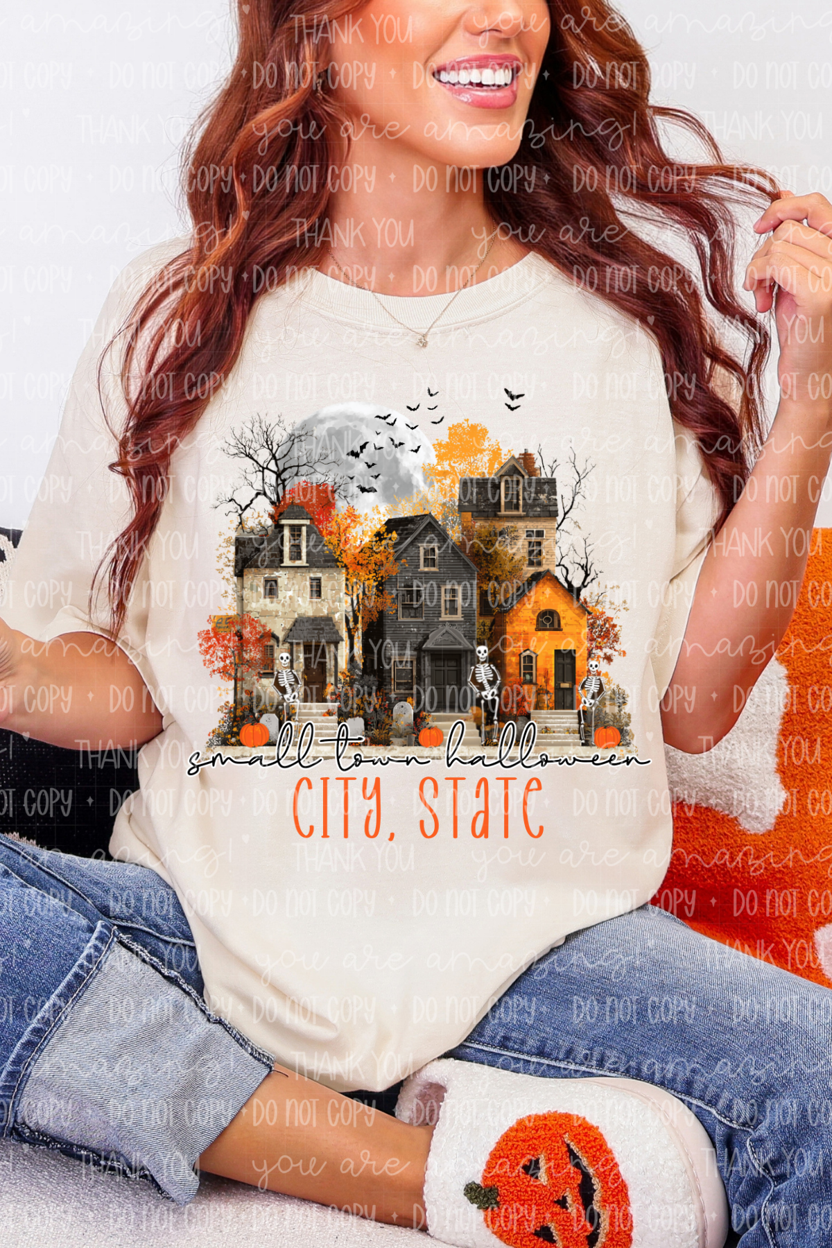 Celebrate Halloween with a charming twist in the Personalize It Small Town Halloween Tee! Perfect for cozy autumn days, this tee lets you add a personal touch that captures your unique Halloween spirit. Whether you're pumpkin picking or trick-or-treating, its playful design brings small-town magic to your festive look. Comfortable and fun, it’s the perfect way to show off your seasonal style with a sprinkle of hometown pride.