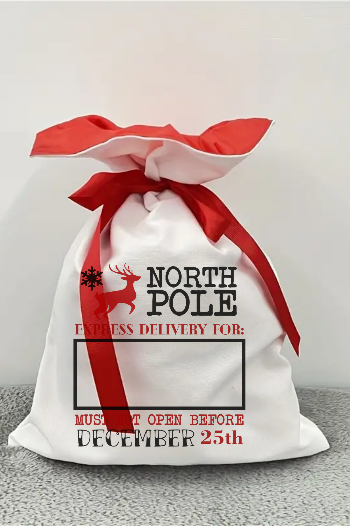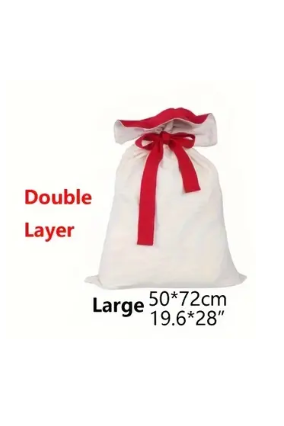 These can be used for a variety of purposes during the Holiday season.  They are great for packaging gifts in for gift exchanges.  They come with a drawstring to cinch the bag closed. These are Double layered  Personalization included on this item, please type the name exactly as you want it printed
