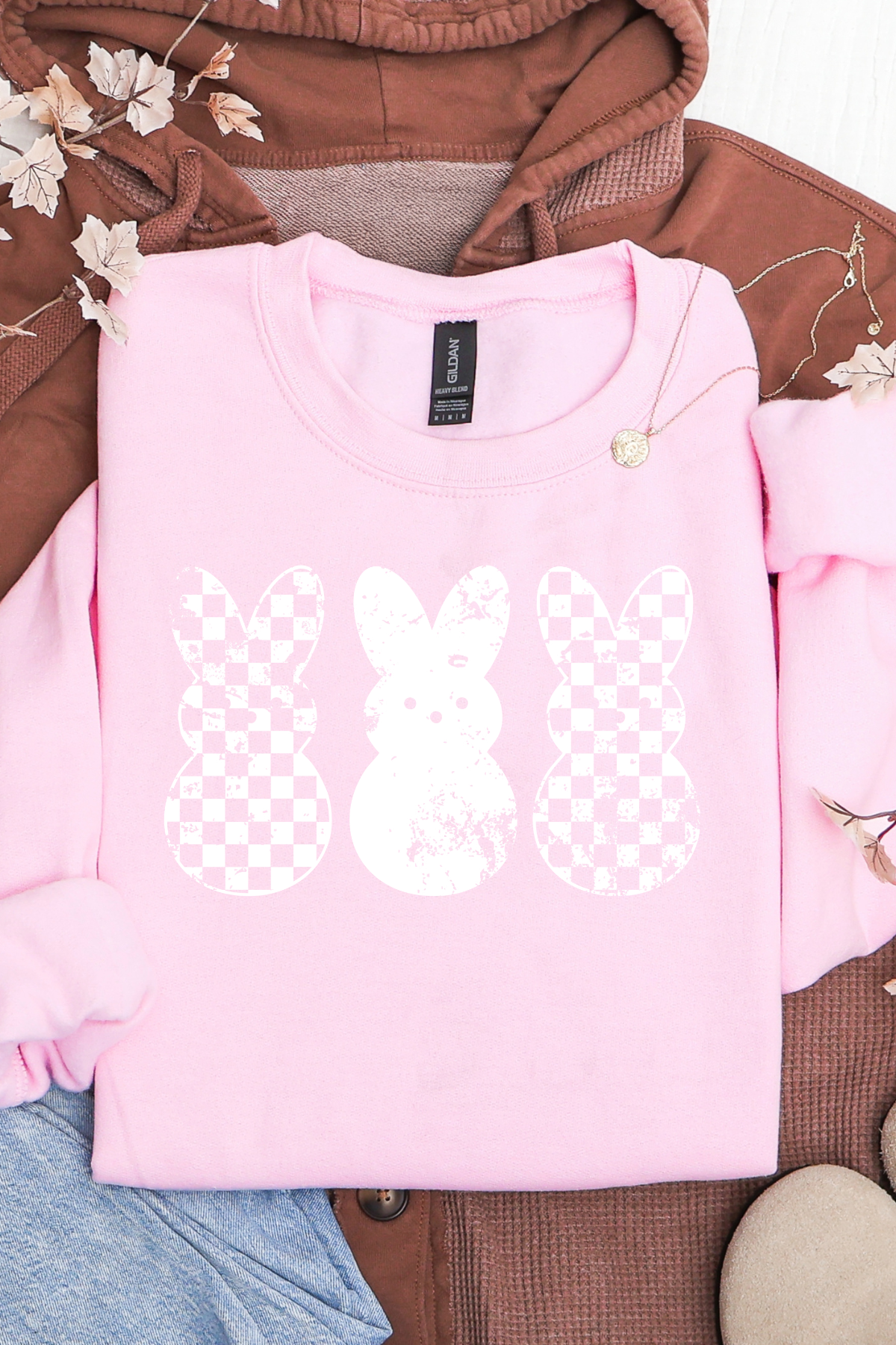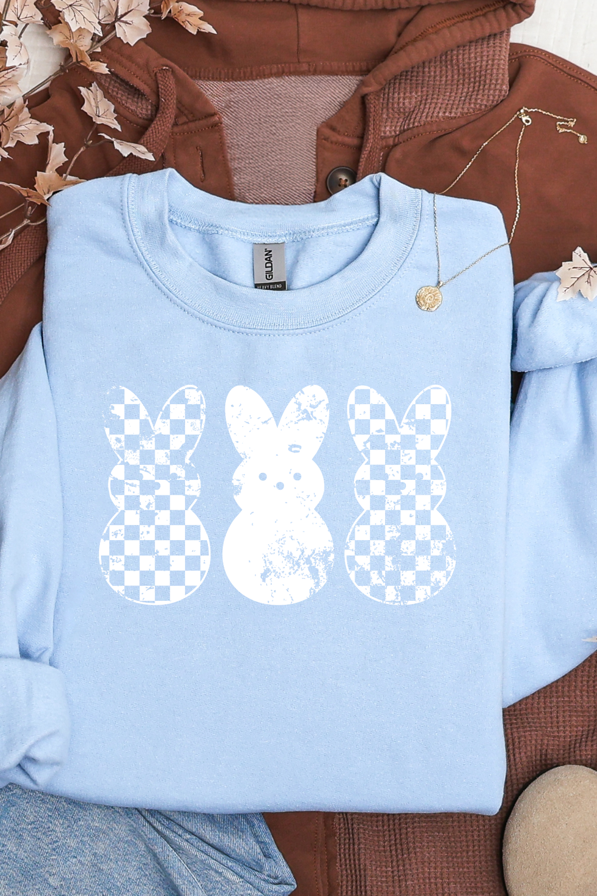 White Distressed Bunnies Tee or Sweatshirt