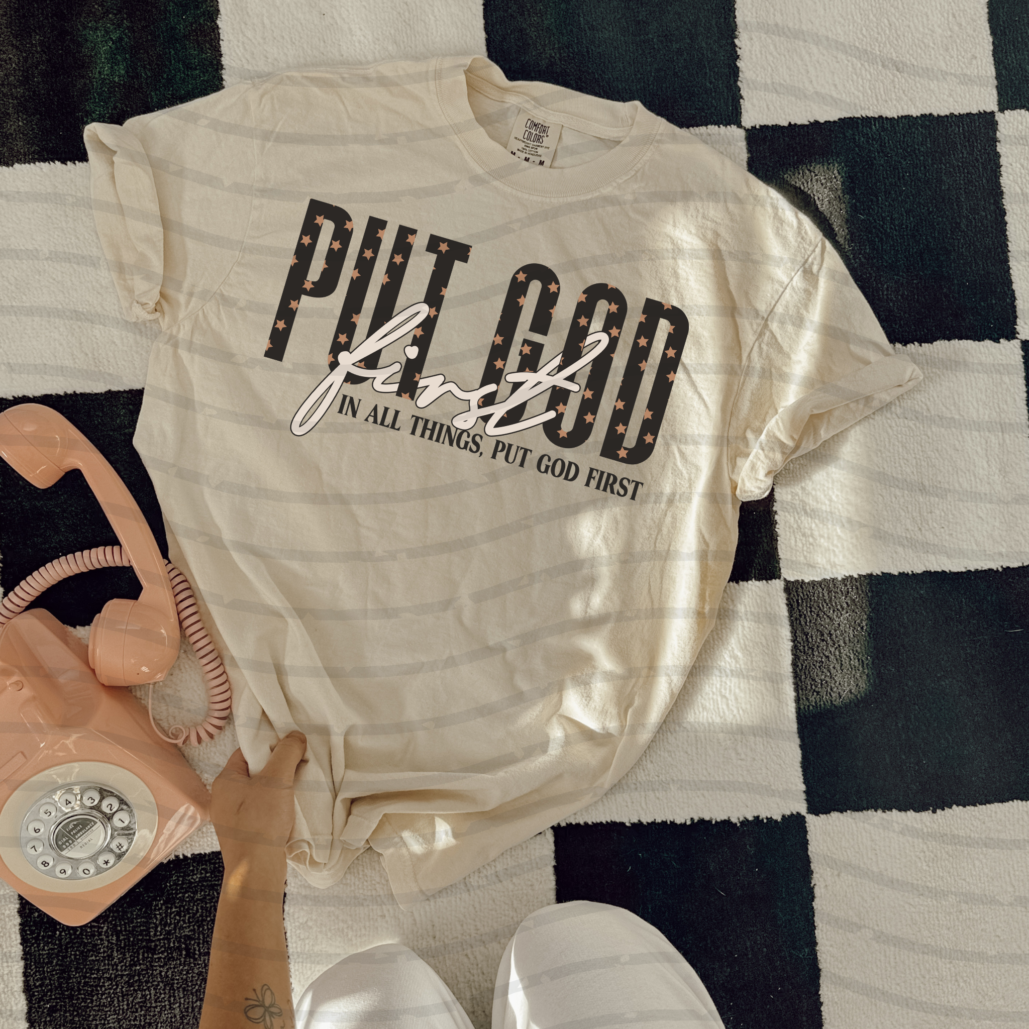 Celebrate your faith with a playful twist in the God First Tee. Crafted for comfort and style, this tee boldly puts what matters most right up front. Perfect for everyday wear, it’s a fun reminder to keep your priorities straight while looking cool.