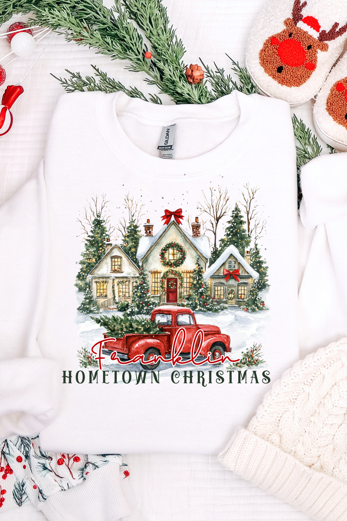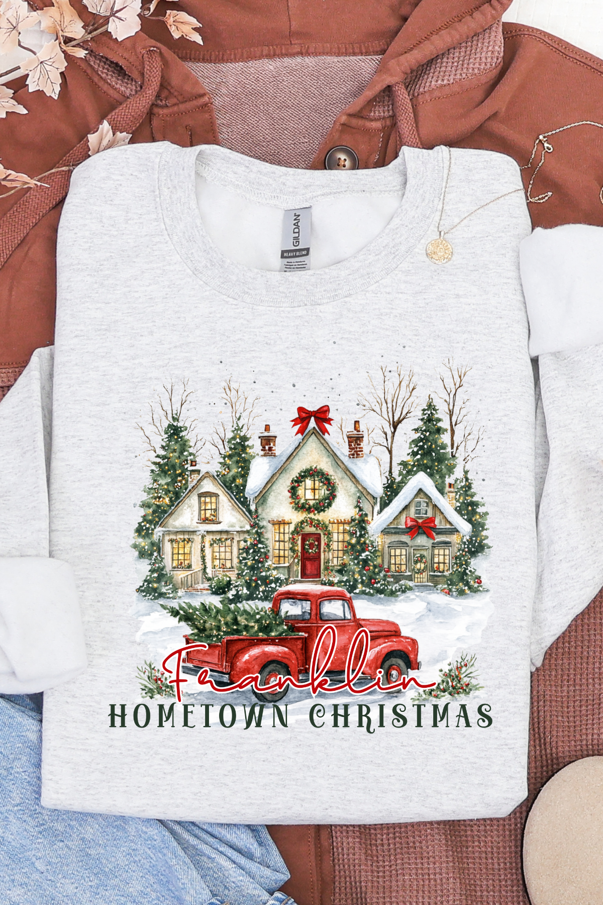 Celebrate the season in cozy style with this Hometown Christmas Vintage House Red Truck Sweatshirt Personalized to your city or State. Featuring a charming vintage red truck and festive house design, this sweatshirt brings holiday cheer right to your doorstep. Perfect for snuggling up or holiday outings, its soft fabric and customizable touch make it uniquely yours. Embrace the warmth and joy of hometown Christmas magic with every wear!